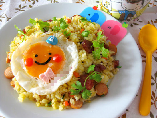 Cơm rang trứng ăn rất chắc bụng. Bạn có thể cho thêm một chút sa tế, hoặc ăn kèm với dưa leo thái lát để món ăn thêm tròn vị và hấp dẫn.