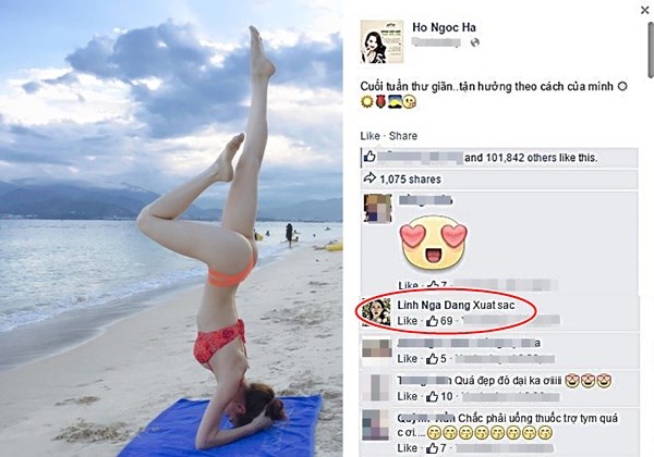 Bức ảnh Hồ Ngọc Hà mặc bikini trồng cây chuối đang gây sốt trên mạng xã hội. Ngay Linh Nga cũng phải thốt lên lời khen Hồ Ngọc Hà