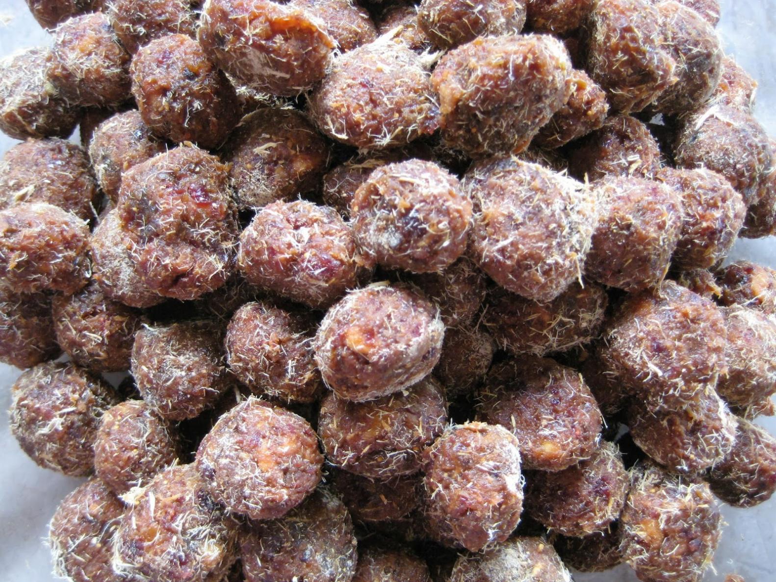 -Khi nguội hẳn, viên từng viên tròn, lăn qua bột cam thảo.
