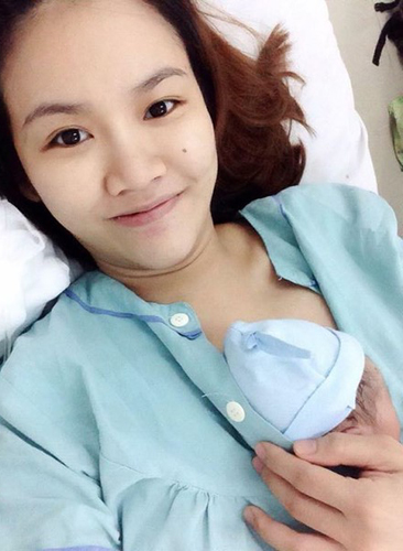 Trên trang cá nhân, Anh Thúy khoe hình ảnh cô "vượt cạn" thành công với con trai nằm trong lòng. Hiện tại sức khỏe hai mẹ con nữ ca sĩ ổn định.