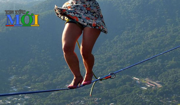 Cô gái mặc váy, đi giày cao gót trên dây ở độ cao 840m khiến hàng ngàn người xem đứng tim…