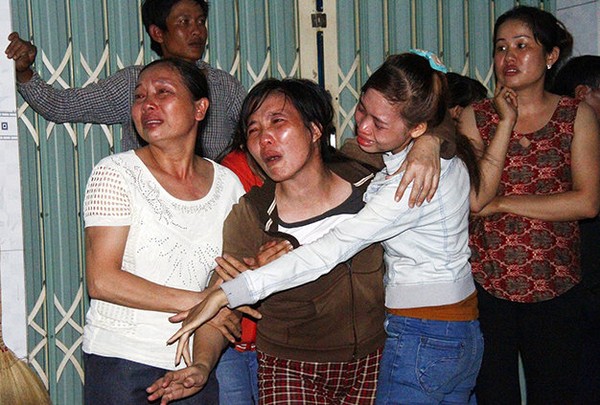 Người nhà nạn nhân đau xót trước cái chết của hai mẹ con - ảnh: Tuổi Trẻ