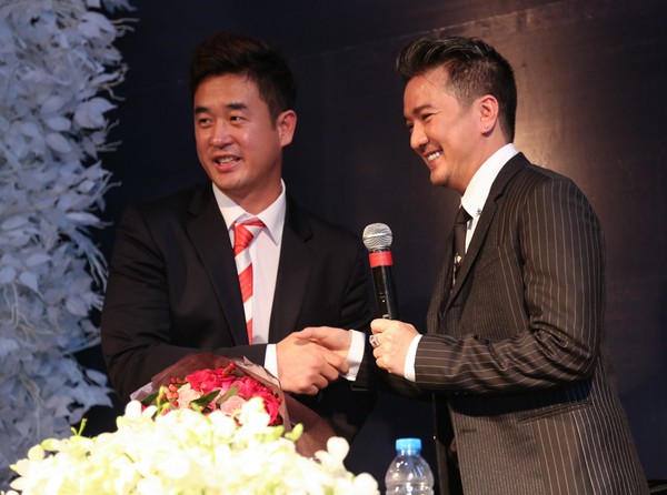 Đại diện ban tổ chức chương trình "Ngôi sao châu Á" chụp ảnh lưu niệm cùng Đàm Vĩnh Hưng