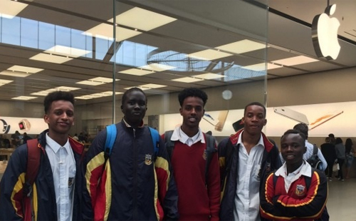 6 sinh viên da màu tại cửa hàng Apple Store ở Australia.