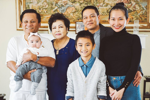 Vợ chồng Kim Hiền và mẹ ruột cùng cậu con trai lớn