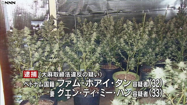 Mới đây, nhiều người gốc Việt tại Nhật Bản vừa bị cảnh sát bắt giữ vì tội trồng và buôn bán cần sa trái phép. Được biết nhóm người này trồng ma túy trong căn nhà hai tầng tại khu vực Toyotomicho và đã bị cảnh sát phát hiện. Đây không phải là chuyện hiếm vì trước đó, hồi tháng 11 đã có một cặp vợ chồng người Việt cũng vừa bị bắt vì tội danh tương tự.