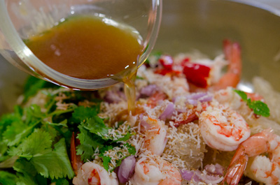 Cuối cùng, bạn chan phần nước trộn gỏi vào chung và trộn đều tất cả, dùng ngay.