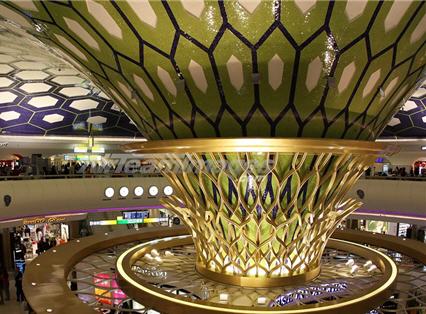 Sân bay quốc tế Abu Dhabi, Các Tiểu vương quốc Ả Rập Thống nhất (UAE): Du khách có thể thư giãn ở các phòng nghỉ hay spa sang trọng ở sân bay Abu Dhabi. Cửa ngõ vào UAE thường xuyên đón tiếp những vị khách giàu có, triệu phú hay tỷ phú. Sân bay có nhiều phòng nghỉ VIP và nhà hàng hạng sang. Các cửa hàng mua sắm miễn thuế bán đủ loại hàng cao cấp, từ trang sức Bulgari, pha lê Swarovski, khăn Hermes, vàng nguyên chất và đá quý. Ảnh: Airteamimages.