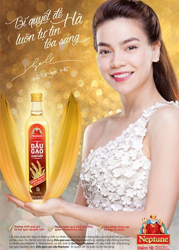 Với nhãn hàng dầu ăn Neptune, Hồ Ngọc Hà đã song ca với Đan Trường qua ca khúc “Mừng tuổi mẹ cha” trong clip quảng cáo.