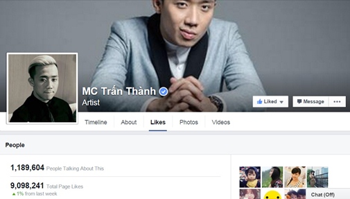 Gần đây, sự nhiều người hâm mộ đã nhận ra một sự thay đổi không nhỏ trong thứ hạng của các Facebook sao Việt. Fanpage của Trấn Thành đã đạt đến 9.098.241 lượt ‘Like’, chính thức vượt qua Facebook của đàn anh Hoài Linh, người hiện đang có 9.097.115 người theo dõi. Cho đến đầu năm 2015, Hoài Linh vẫn là nghệ sĩ có tầm ảnh hưởng lớn thứ 2 trên Facebook , chỉ đứng sau Khởi My.
