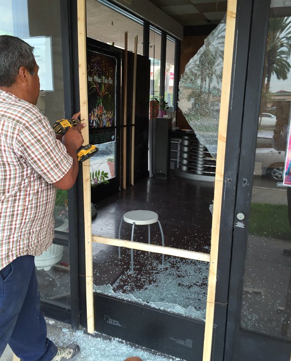 “Hai tuần trước, như thường lệ, tôi tới mở cửa tiệm vào buổi sáng, thì thấy cửa kiếng bị đập nứt rạn từ khi nào. Tôi không biết lý do, chỉ biết gọi báo cho cảnh sát Westminster. Tôi nghe nói họ đang điều tra,” một nhân viên bán hàng, không muốn cho biết tên, nói với nhật báo Người Việt.