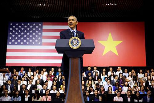 Trong ngày cuối cùng của chuyến công du Việt Nam, Tổng thống Mỹ Obama có cuộc gặp gỡ và giao lưu với gần 1.000 thanh niên Việt Nam là thành viên của Sáng kiến Thủ lĩnh trẻ Đông Nam Á (YSEALI) tại thành phố Hồ Chí Minh.