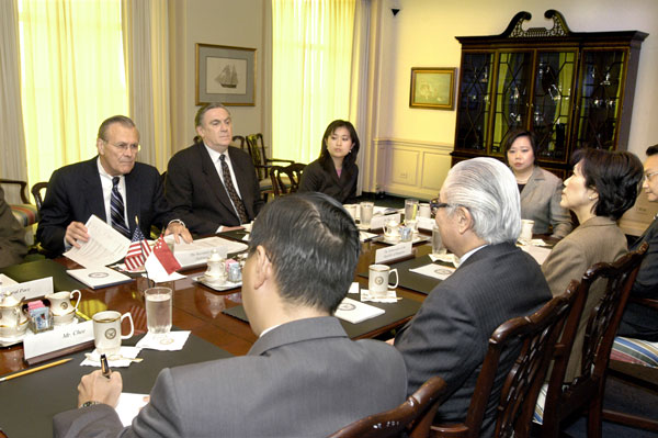 Cô Elizabeth Phú góp mặt trong cuộc họp về các vấn đề an ninh khu vực và toàn cầu với trọng tâm là chống chủ nghĩa khủng bố tại Lầu Năm Góc, tháng 4/2004, giữa Bộ trưởng Quốc phòng Donald H. Rumsfeld và Phó Thủ tướng Tony Tan của Singapore.