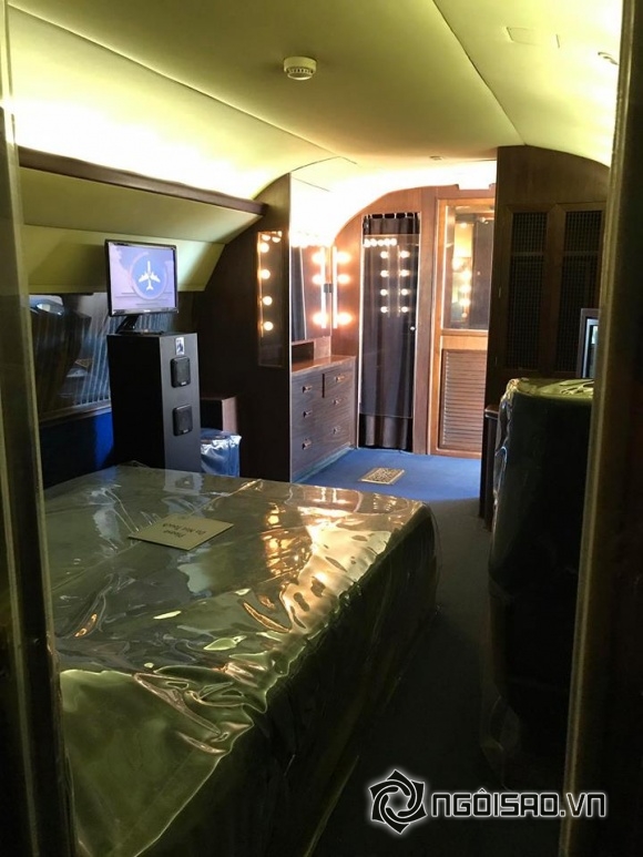 Qua ảnh có thể thấy máy bay riêng của nam ca sĩ Elvis Presley khá lớn. Bên trong có đầy đủ tiện nghi như phòng ngủ, phòng thay đồ, phòng thư giãn. Hầu hết các đồ dùng được bảo quản sạch sẽ và ngăn nắp.