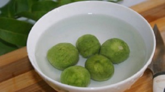 Sấu gọt sạch vỏ, cứa mấy lát ngoài viền quả để khi nấu, sấu nhanh chín và ra nhân thịt.