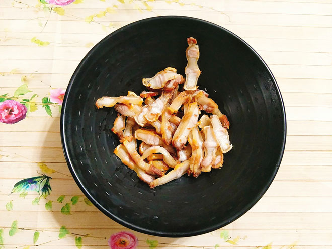 - Bước 4: Gắp thịt ba chỉ ra thớt để cho nguội bớt và thái miếng mỏng cho vào tô.
