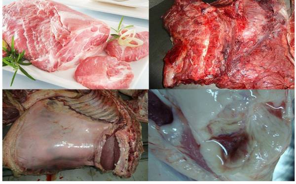 Thịt có tính chất bất thường như nhớt, dính tạp chất, bẩn, rỉ dịch, mùi hóa chất, mùi hôi hoặc khác thường.