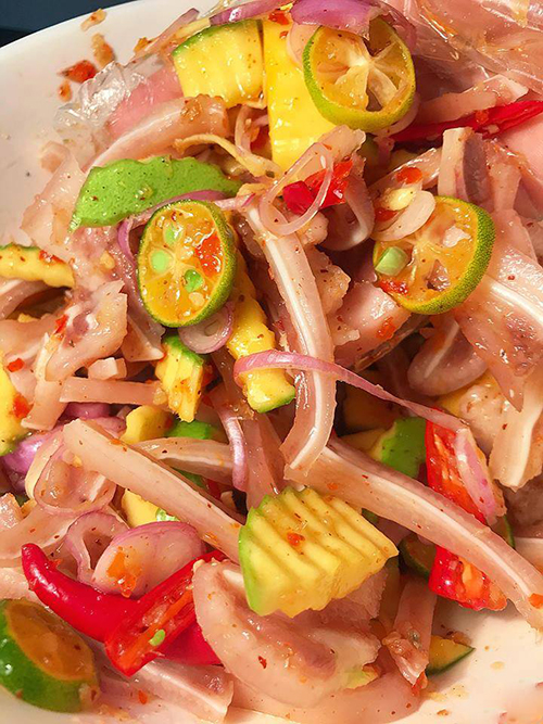 Tai lợn trộn sốt ớt chua ngọt thành phẩm.