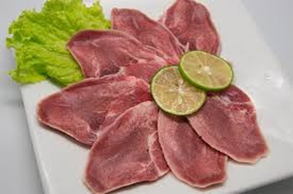 2. Lưỡi lợn nướng. Nguyên liệu: Lưỡi lợn, hành tây, giấm nuôi, đường, xì dầu, tỏi băm, dầu mè, têu, muối. Lưỡi luộc trên bếp 15 phút nhấc xuống, cạo sạch, cắt đôi, rửa để ráo. Ảnh: nhahanglau.vietnam55 .com.