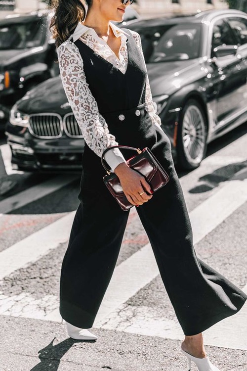 Này nhé, sẽ chẳng đồng nghiệp nào ở nơi làm việc không ngả mũ bái phục nếu bạn xuất hiện thanh lịch cùng sơ mi trắng phối cùng quần ống rộng màu đen – set đồ vừa cổ điển, vừa thanh lịch mà vẫn vô cùng mềm mại và tôn dáng.