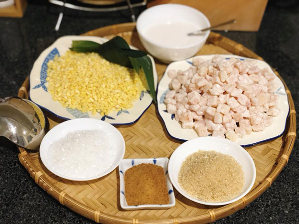 - Đậu xanh 100gram tách đôi bỏ vỏ.