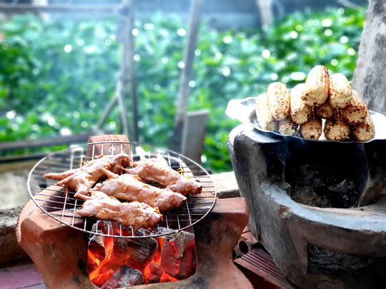 Chuột đồng chánh hiệu nướng lửa than liu riu. Ảnh: Đỗ Suốt Anh