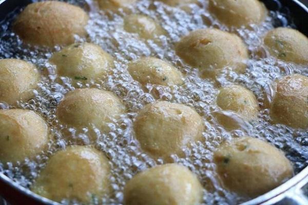 - Bước 3: Đun nóng dầu ăn trong chảo, viên đậu trứng thành từng viên tròn nhỏ sau đó cho vào chảo dầu chiên chín vàng, sau đó vớt ra đĩa.