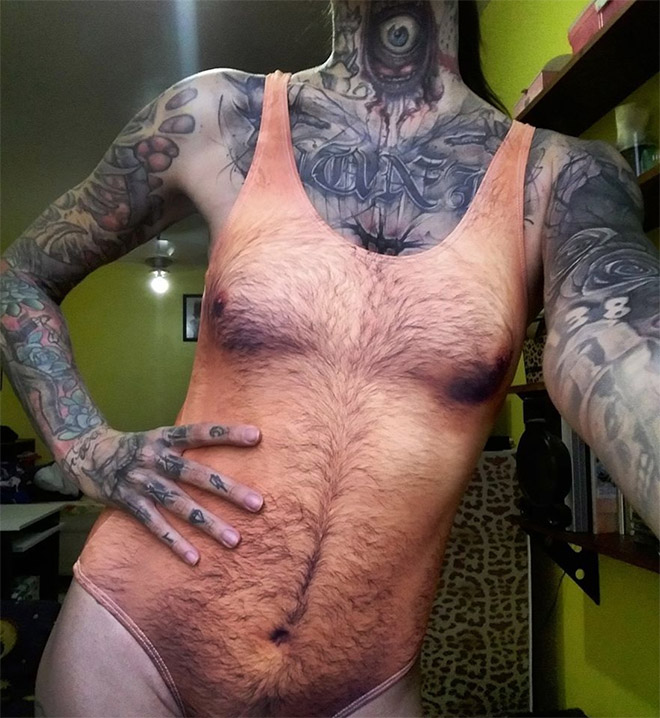 "Khi tôi mặc nó với quần short để đi cắt cỏ, nhiều người đã lầm tưởng tôi cởi trần. Nhìn từ xa, bộ ngực đầy lông trông giống như một làn da bị rám nắng."