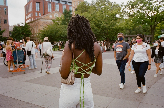 Không khó để bắt gặp những chiếc áo "mát mẻ" trên đường phố New York sau đợt giãn cách xã hội. Sara Messinger/ New York Times.