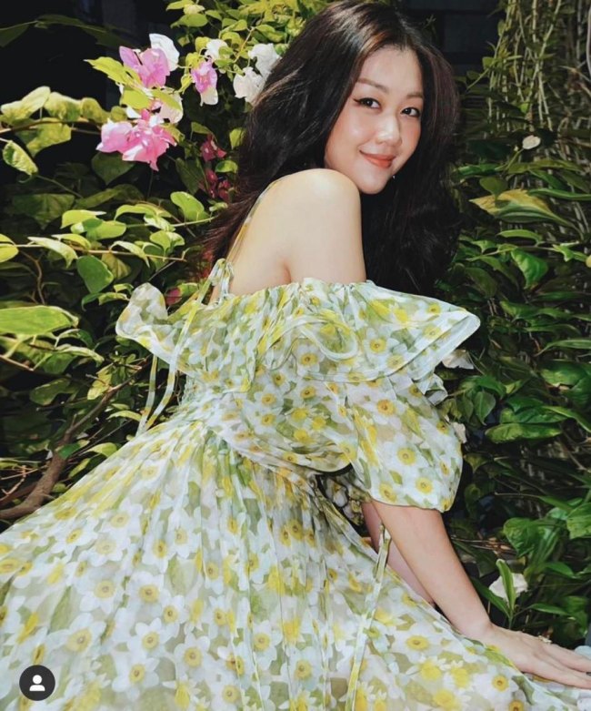 Vẻ đẹp nàng thơ của cô thường được thể hiện qua những chiếc váy hoa bồng bềnh, mềm mại.