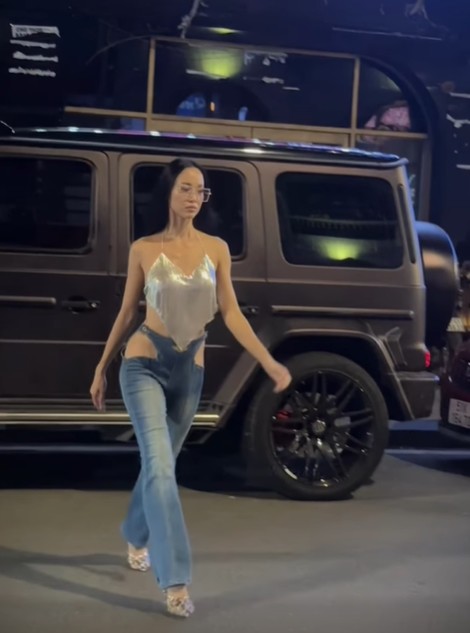 Mới đây, Vũ Ngọc Anh đăng tải clip ghi lại khoảnh khắc cô dạo bước trên đường phố, nhận được nhiều sự quan tâm của cư dân mạng. Bà xã Cường Seven diện áo yếm mỏng manh, phối cùng quần jeans cut-out phần hông đầy táo bạo. Thiết kế làm nổi bật vòng eo thon gọn, đường cong hình thể nóng bỏng cùng đôi chân dài miên man của mỹ nhân 9X.
