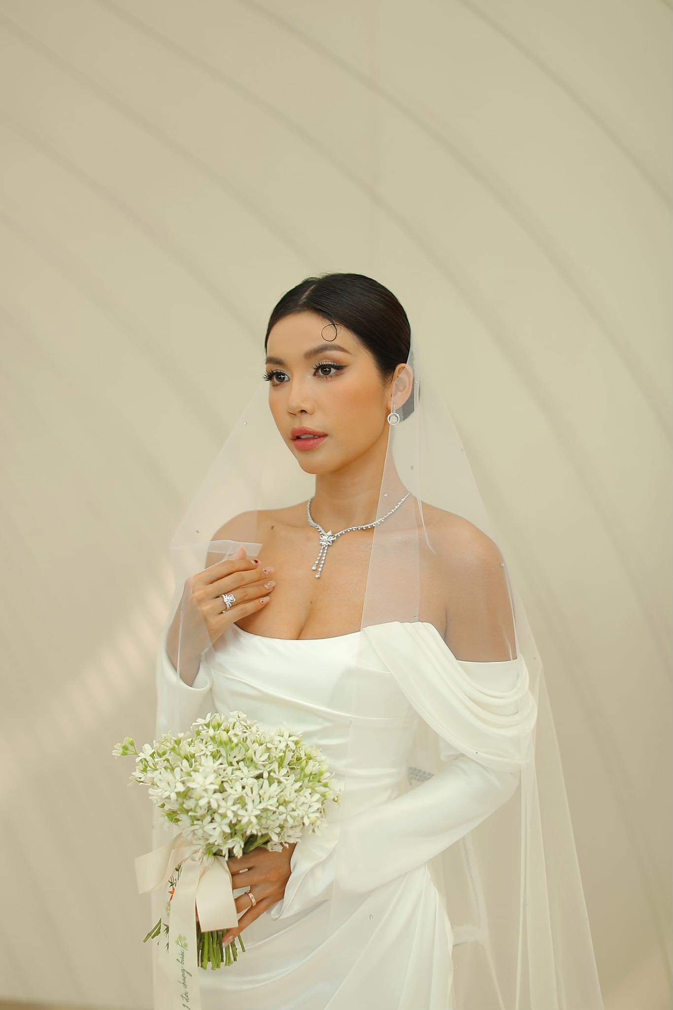 Người đẹp chia sẻ: "Tôi đã mặc quá nhiều thiết kế lộng lẫy khi làm mẫu, nên trong ngày trọng đại chỉ muốn khoác lên mình bộ váy nhẹ nhàng, tối giản và tinh tế nhưng vẫn toát lên nét quyến rũ".