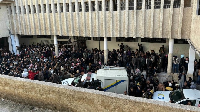 Nhiều người kéo tới nhà tù Saydnaya ở ngoại ô Damascus tìm người thân ngày 9/12. Ảnh: FT