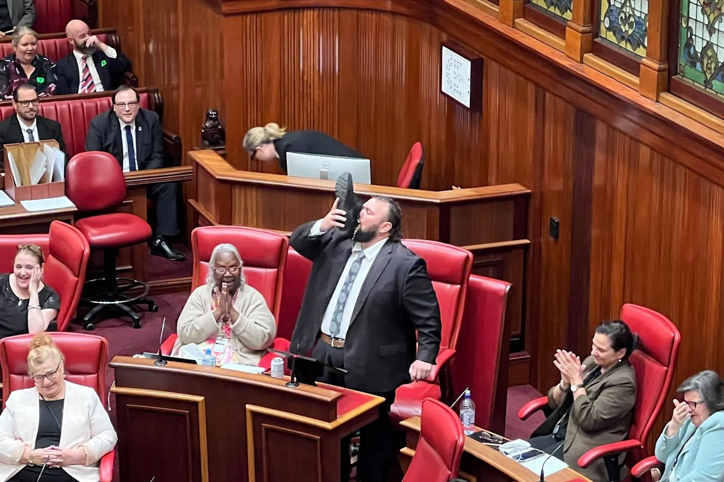 Một nghị sĩ đảng Lao động sắp mãn nhiệm đã gây náo loạn tại Hội đồng lập pháp bang Tây Australia sau khi kết thúc bài phát biểu chia tay bằng màn uống bia bằng giày.