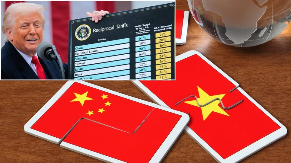 Tại sao ông Bành lại "khá vui" khi thấy ông Trump giơ tấm bảng mà dòng đầu tiên trên đó hiển thị Mỹ áp thuế 34% đối với hàng hóa Trung Quốc?