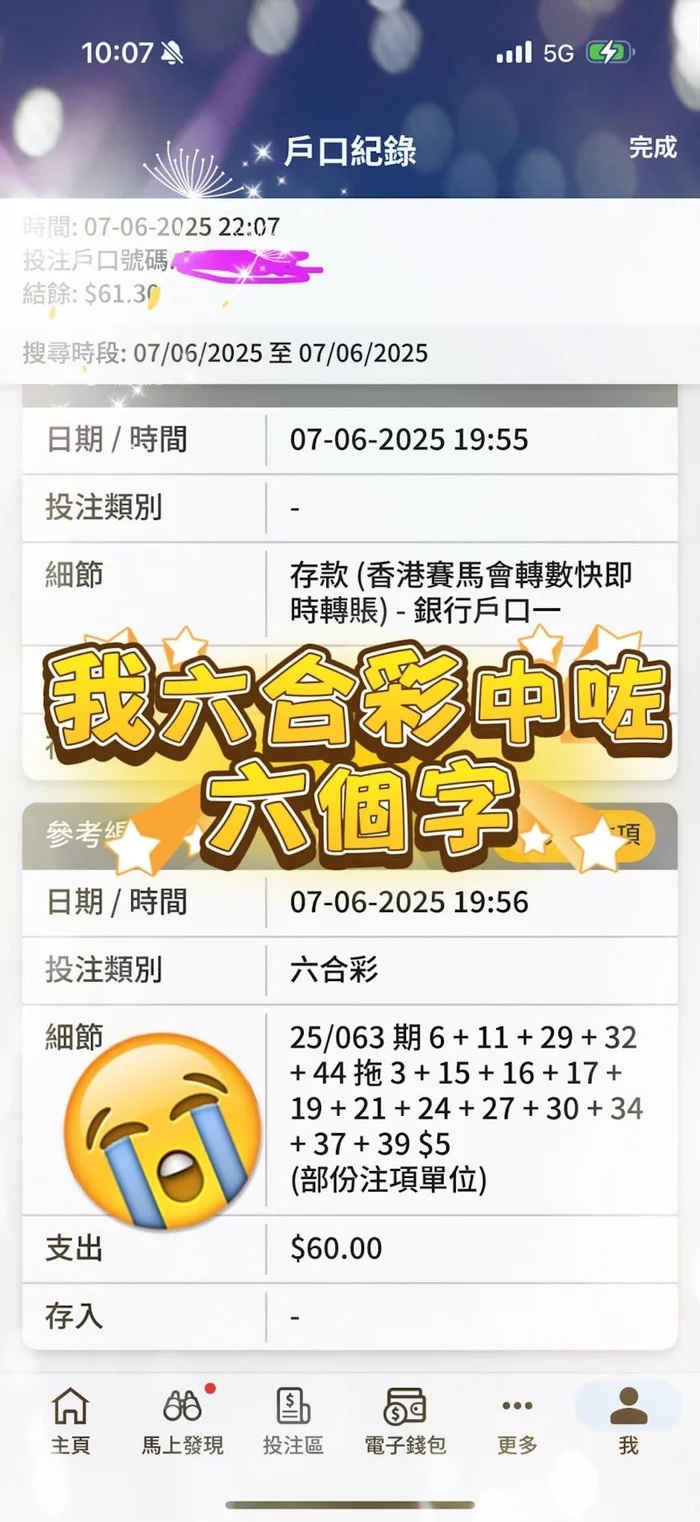 Theo thông tin từ Jockey Club – đơn vị tổ chức xổ số Mark Six – kết quả kỳ quay số thứ 63 bao gồm các con số 9, 15, 27, 30, 34, 39 và số đặc biệt 19. Với dãy số này, có một người đã lựa chọn đúng toàn bộ các con số trúng, thậm chí bao gồm cả số đặc biệt. Thế nhưng, anh không đủ điều kiện để lĩnh thưởng – một sự thật nghiệt ngã khiến anh đăng ảnh chụp màn hình và chia sẻ đầy chua chát: “Tôi đã chọn đúng cả 6 số, lần đầu tiên trong đời, nhưng vẫn tay trắng… chỉ vì không có tiền nhận giải!”.