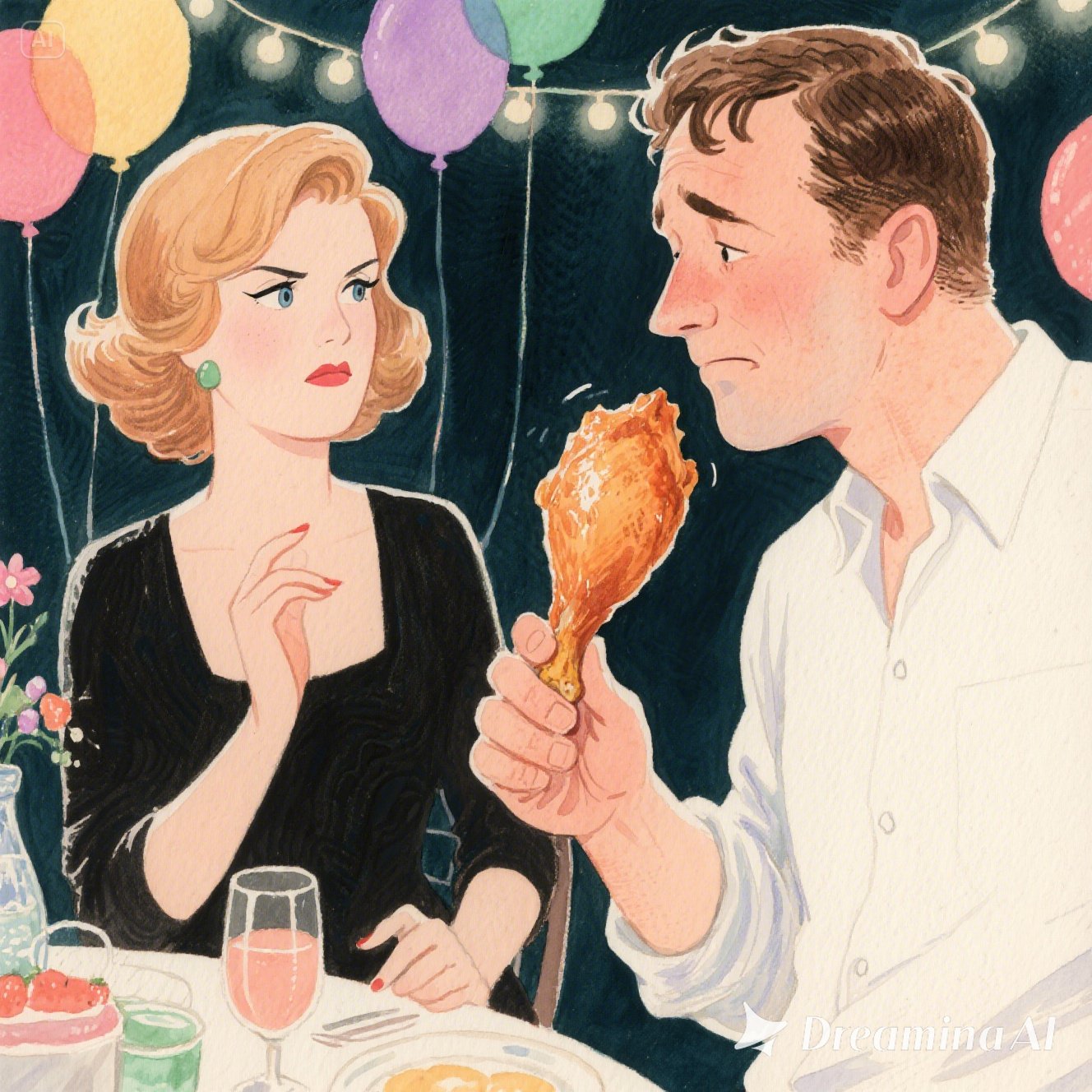 Chồng đờ người… cuối cùng, lại lẳng lặng ăn thêm cái đùi gà cho bõ.
