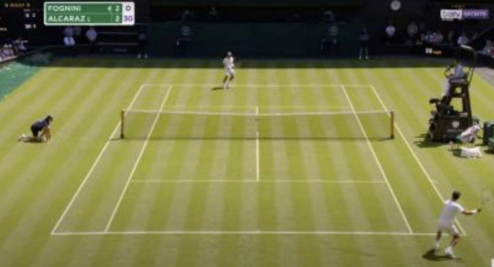 Trước Fabio Fognini ở vòng một Wimbledon 2025, khi đối mặt những cú giao bóng hai đạt tốc độ 159 km/h, Alcaraz hoàn toàn có thể lựa chọn đánh dọc dây hoặc chéo sân. Nhưng anh cố tình cầm vợt kiểu cầm búa, đánh cắt để bóng rơi giữa sân, buộc đối thủ phải di chuyển vào trong.