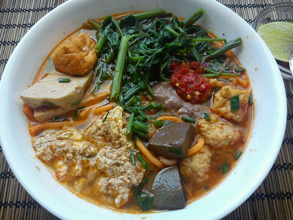 Đối với người VN thì canh bún là đây. Giống như bún riêu nhưng rau muống được luộc chín.