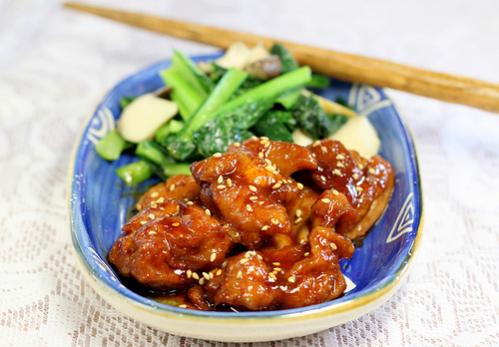 Món gà sốt cay với nước sốt có màu vàng nâu óng hấp dẫn và vị cay ngọt dễ chịu tuyệt ngon.