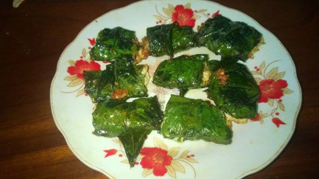 Thịt băm nhỏ cuốn với lá xương sông - Ảnh: Hoàng Hân