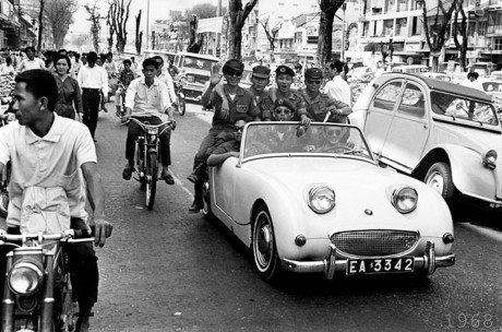 Lính Sài Gòn trên một chiếc xe mui trần duyên dáng, 1968.