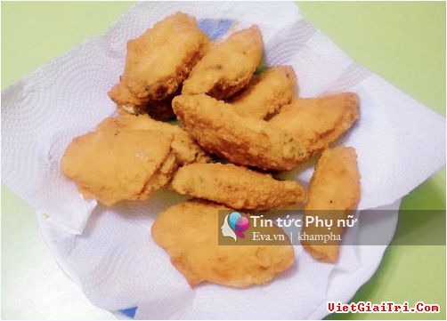 Bước 4: Đun 1 nồi dầu nóng thì thả từng miếng cánh gà vào chiên vàng giòn 2 mặt rồi vớt ra giấy thấm dầu.