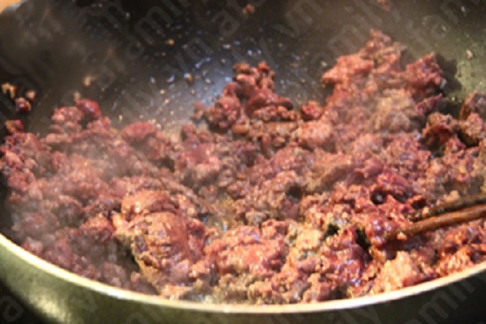 Các mẹ cho thịt heo và gan vào đảo đều cho đến khi chín.