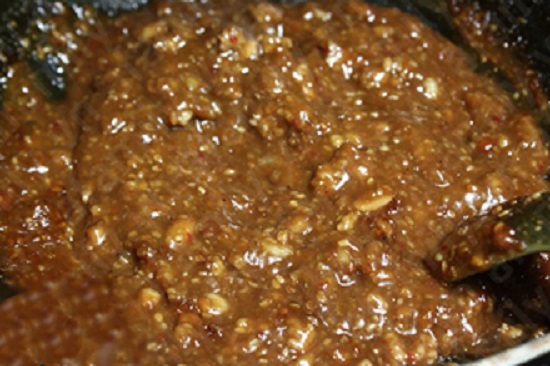 Cho từ từ nước tương, ớt bột vào hỗn hợp đun cho đến khi sánh đều là được