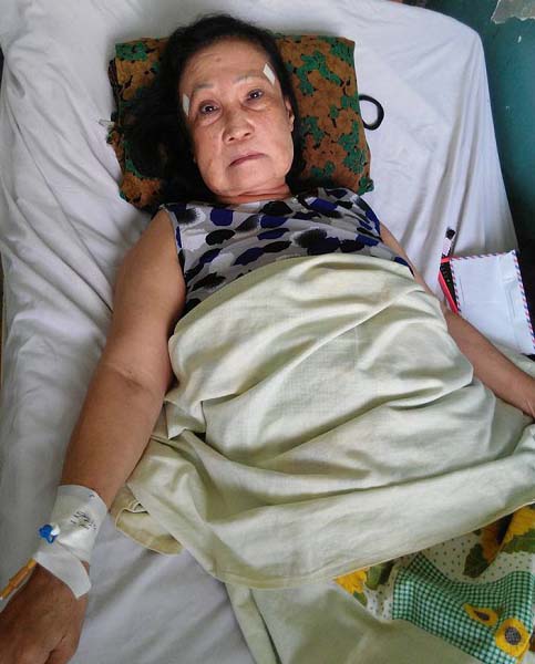 Hôm nhập viện, trong túi bà không có một đồng. Năn nỉ mãi, bệnh viện mới chấp nhận cho bà tạm đóng trước 1 triệu. Số tiền đó do người chị dâu vay nặng lãi người ta, chỉ tính riêng tiền lãi, một tháng là 600.000 đồng.