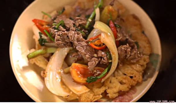 Miếng bánh phở vàng giòn cùng nước sốt thịt bò đậm đà sẽ cho bạn cảm giác thích thú khi thưởng thức món ăn này.