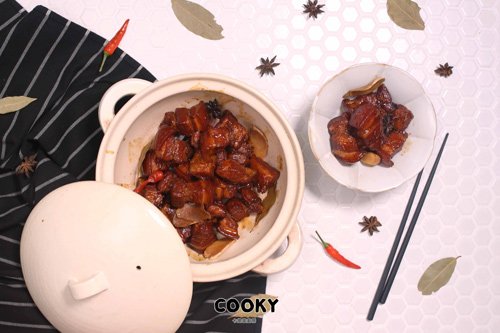 - Đậy vung hầm trong 1 tiếng tới khi thịt mềm nhừ và ngấm đều gia vị.