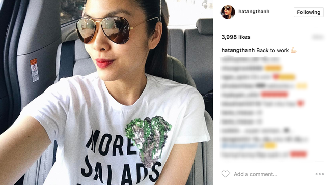 Chia sẻ mới nhất của Tăng Thanh Hà trên Instagram. Kèm theo tấm hình tươi tắn, cô viết: "Back to work" (Tạm dịch: Quay trở lại với công việc).