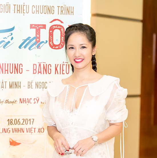 Diva Hồng Nhung trông trẻ trung và xinh đẹp khi diện chiếc váy ren trắng, tết tóc hai bên
